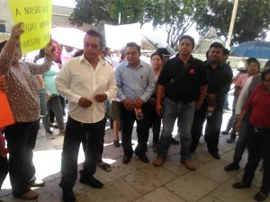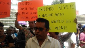 habitantes de la agencia municipal de Santa Rosa Panzacola se manifestaron en la puerta principal del palacio municipal de Oaxaca de Juárez, para exigir se le tome protesta al ciudadano Miguel Aparicio como Agente municipal de dicha agencia, ya que aseguran, fue él quien ganó las elecciones realizadas el pasado 5 de marzo.