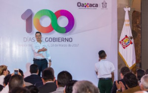 “Hemos avanzado, hemos reactivado al estado y lo hemos puesto en movimiento, porque ese era el objetivo de los primeros 100 días: demostrar que sí se puede terminar las obras que se inician, que podemos rendir cuentas y Oaxaca puede ser transparente, y de que desde el gobierno tenemos la capacidad de regresarle el prestigio a la política”, aseveró.