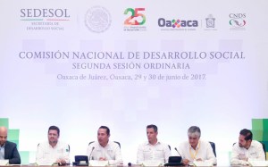 El Gobernador Alejandro Murat Hinojosa y el Secretario de Desarrollo Social (Sedesol), Luis Enrique Miranda Nava, encabezaron este jueves, la Segunda Sesión Ordinaria de la Comisión Nacional de Desarrollo Social, donde se reiteró el compromiso común de México en contra de la pobreza y en favor del desarrollo social establecido en la Agenda 2030, de la Organización de las Naciones Unidas (ONU).