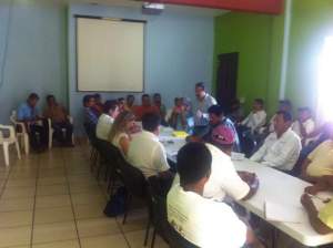 El Frente Amplio de Lucha Popular y la Representación de las Cooperativas Pesqueras, que trabajan en la laguna de Cerro Hermoso, se reúnen con Javier Juárez Hernández, Presidente Municipal de Villa de Tututepec de Melchor Ocampo, acompañado de todo su cabildo, donde también hizo acto de presencia el Director de Obras y Flota Pesquera en CONAPESCA.