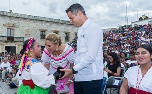 Oaxaca de Juárez, Oax. 23 de julio de 2017. La Plaza de la Danza fue el escenario donde la Asociación Artística “Los Ángeles de Luz”, integrado por niñas y niños con Síndrome Down, brindaron este domingo “Una Guelaguetza muy especial”, con la presencia del Gobernador Alejandro Murat Hinojosa, y su esposa Ivette Morán de Murat.