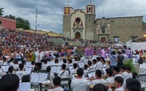 Acompañados por la Banda Sinfónica de Tlaxiaco, “Los Ángeles de Luz” abrieron su presentación con sones y jarabes de San Melchor Betaza; posteriormente le siguió el Jarabe Ejuteco que fue ovacionada con los aplausos del público.