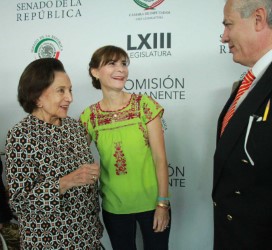 Previo a la sesión ordinaria de la Comisión Permanente del Congreso de la Unión, el legislador federal ofreció una conferencia de medios, acompañado de connotados mexicanos como Ifigenia Martínez, Javier Jiménez Espriú, Enrique González y Alfredo Rojas Díaz Durán, quienes hablaron sobre la renegociación del TLCAN.