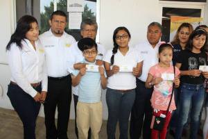 El diputado federal, Francisco Martínez Neri, acompañado del presidente municipal de San Jacinto Amilpas, Manuel Xavier García Ramírez, entregó lentes a niñas y niños de esta demarcación.