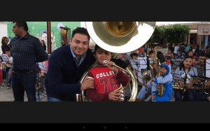Entrega EL Presidente Municipal de Santa Lucía del Camino Raúl Cruz, de instrumentos musicales a la Banda Filarmonica Infantil y Juvenil del lugar, Un Barítono, Saxofón, Tenor y Bombo.