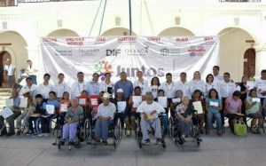 La Presidenta del Sistema DIF Oaxaca encabezó esta gira de trabajo, donde en coordinación con diversas dependencias Estatales y Federales se entregaron diversos apoyos, como sillas de ruedas, bastones, muletas y andaderas.