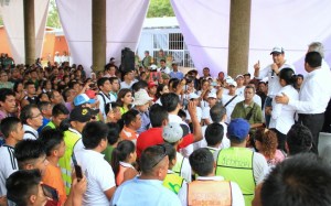 En compañía del representante del Gobierno Federal, Secretario de Comunicaciones y Transportes, Gerardo Ruiz Esparza, el Ejecutivo Estatal supervisó el albergue habilitado en esta localidad que atiende a 125 personas y quienes reciben alimentación, a través de la Cocina Comunitaria habilitada por el Ejército Mexicano.