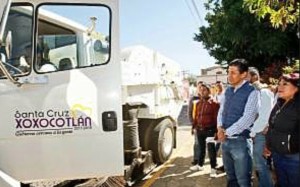 Alejandro Lòpez Jarquìn, Presidente Municipal Hace entrega de un parque vehìcular para Santa Cruz Xoxocotlan, , con una inversión de 2 millones de pesos, consistente en seis vehìculos, para las diferentes àreas de ese municipio, un camión tipo barredora, un vehículo compactador de basura, un camión con canastilla para alumbrado público.