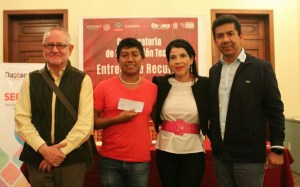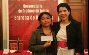 La Secretaria de las Culturas y Artes de Oaxaca, Ana Vásquez Colmenares entregó los recursos correspondientes a la Convocatoria de Producción de Teatro 2017 a cuatro compañías teatrales de Oaxaca, que próximamente realizarán las puestas en escena de estas obras.