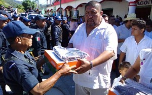En su momento el Presidente Municipal, señaló “Con estos uniformes, que hoy se entregan, son para combatir la seguridad de San Pedro Mixtepec, me siento orgulloso del trabajo que están desempeñando y aclarar que los hechos suscitados en la bahía principal, fue negligencia de la Policía del Estado, ya que ellos tienen a su cargo esa zona, nosotros no tenemos cobertura en este lugar en el tema de seguridad.