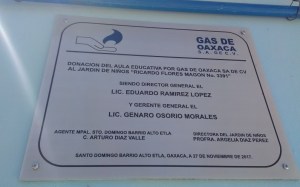 En entrevista con el C. Genaro Osorio Morales, Gerente General de Gas de Oaxaca, comentó esta es una empresa comprometida con la comunidad, por que no es cuestión de salir a vender solamente, sino que estamos comprometidos con el entorno y una parte muy importante son las escuelas, pensamos desde el incio en los Jardines de niños, pues ahí se van formando los futuros mexicanos y profesionistas por eso seguramente, participamos en el hogar.