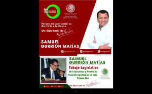 Este miércoles 20 de diciembre el Diputado Local, Samuel Gurrión Matías, presentará en el Congreso del Estado un documento oficial, como parte de su I Informe de Actividades y Resultados Legislativos como de Gestión Social.