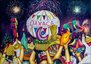La obra “La Alegría de mi tierra”, del artista gráfico Esli Janai Castillo Zamitiz, fue seleccionada para la promoción de esta festividad multiétnica del pueblo de Oaxaca.