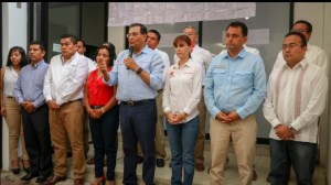 El líder petista y candidato a diputado federal por el distrito 8 con cabecera en Oaxaca de Juárez ofreció esta conferencia de medios junto a otros candidatos del PT en la coalición Juntos haremos historia, a diputaciones federales: Margarita García por el distrito federal 3 con cabecera en Huajuapan de León; Daniel Gutiérrez por el distrito federal 10 con cabecera en Miahuatlán de Porfirio Díaz y Maribel Martínez, por la tercera circunscripción del país; así como candidatos a diputaciones locales como Hita Ortiz Silva y Félix Serrano Toledo, por representación proporcional; César Morales Niño por el distrito local 5 con cabecera en Asunción Nochixtlán; Noé Doroteo Castillejos por el distrito local 17 con cabecera en Tlacolula de Matamoros; Saúl Cruz Jiménez por el distrito local 10 con cabecera en San Pedro y San Pablo Ayutla; Mauro Cruz Sánchez por el distrito local 8 con cabecera en la Heroica Ciudad de Tlaxiaco.