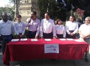 En conferencia de prensa las y los candidatos a diputados locales y presidentes municipales de los partidos (PT, MORENA Y ENCUENTRO SOCIAL), que encabeza Benjamín Robles Montoya, candidato a la diputación fedral dieron a conocer y firmaron la iniciativa 2 de julio.