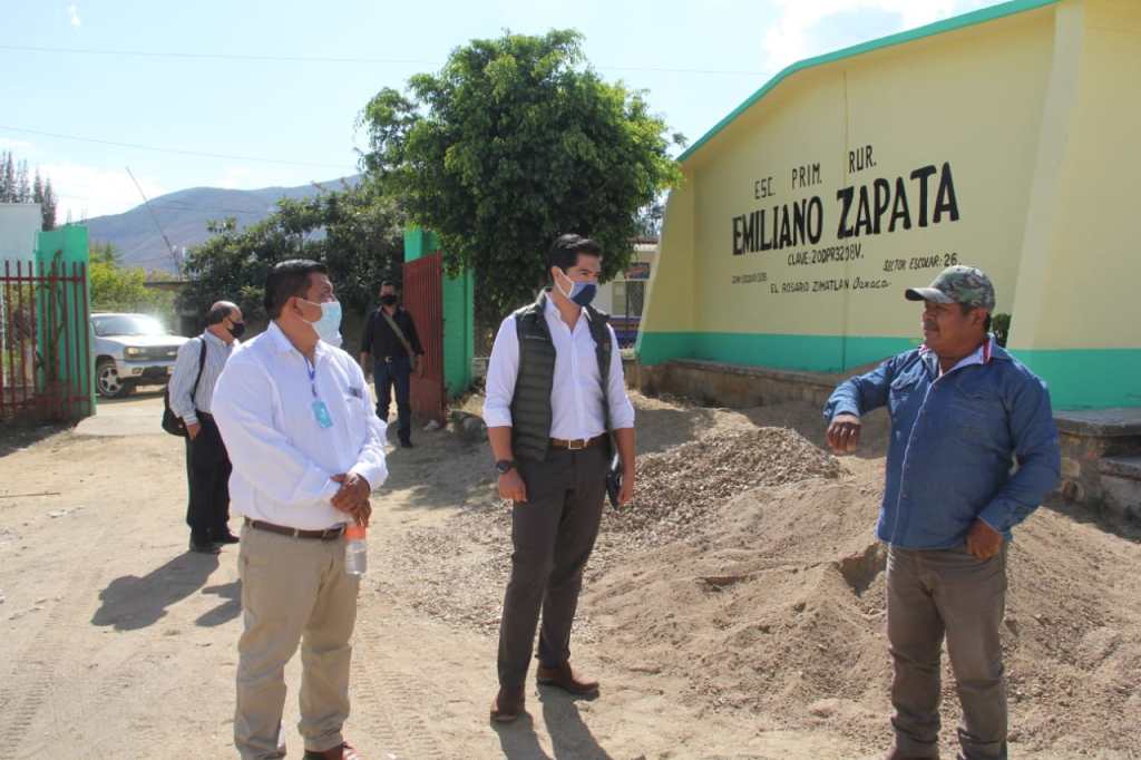 Cumpliendo las instrucciones del gobernador Alejandro Murat Hinojosa, de atender las necesidades de los municipios en la entidad, el Secretario supervisó también, con el edil de Zimatlán de Álvarez, Javier Barroso Sánchez, los avances de tres de siete techados escolares que se construyen con una inversión superior a los 14 millones de pesos.