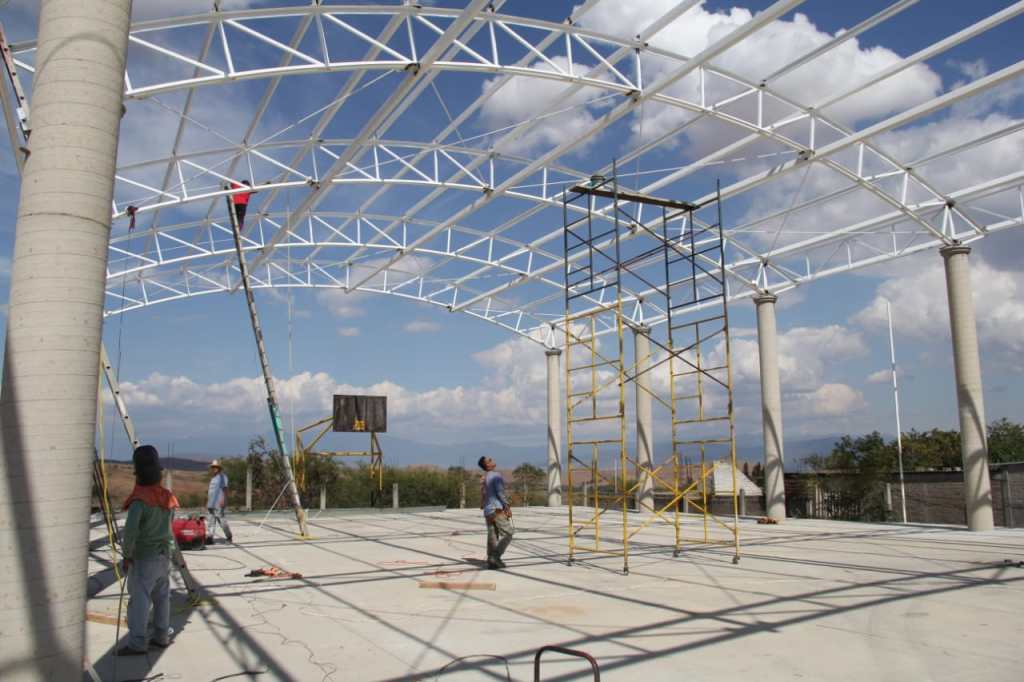 También supervisaron el techado en la Escuela Primaria Morelos de La Raya Zimatlán, donde la tesorera del Comité de Padres de Familia, Gloria Contreras Dimas, agradeció la obra en beneficio de las y los niños del lugar, “qué bueno que hicieron caso a nuestra petición para que los niños no realicen ejercicio a la intemperie; ahora pueden tener en este espacio sus convivencias y ceremonias sin sufrir el calor o la lluvia”, refirió.