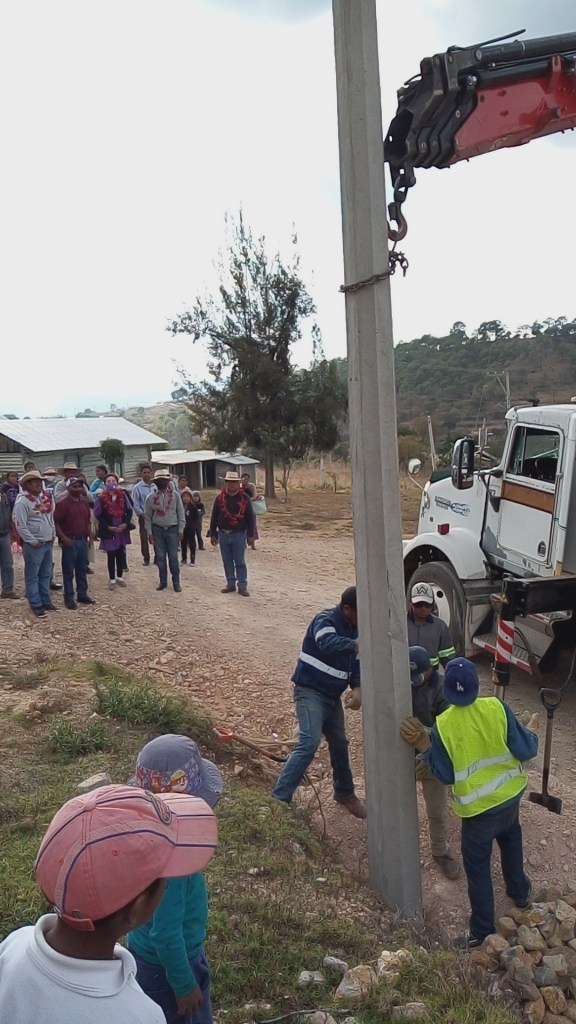 Agencia marginada en la Mixteca Alta, se beneficia con 38 postes de concreto para la red eléctrica. AINCO