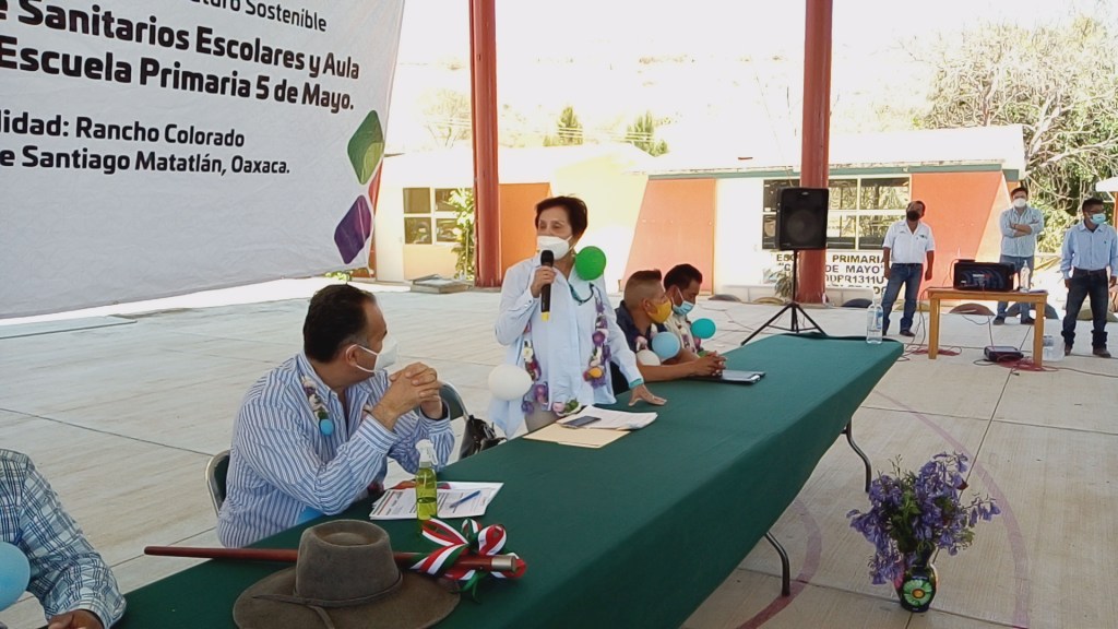 Con emotivo mensaje la Presidenta de AINCO, Blanca Pineda Arellano, señaló la importancia de contar con el apoyo incondicional del Maestro Alejandro Murat Hinojosa, Gobernador del Estado, para la construcción de esta aula didáctica y baños, ya que estás representan el inicio de mejorar y contar con espacios dignos, porque cuando hay voluntad, amor y compromiso moral a la humanidad, las cosas se pueden hacer, por las y los niños, para que puedan recibir una educación digna y darles esa oportunidad de igualdad y justicia social, para su aprendizaje dijo, agradezco la confianza depositada, estoy cumpliendo la palabra empeñada, así como seguir ayudando en las gestiones a favor de las comunidades más apartadas., puntualizó la Lic. Blanca Pineda Arellano.