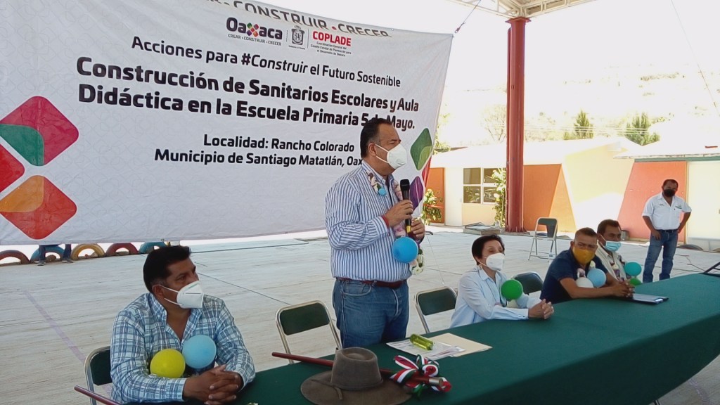 De la mano AINCO y Gobierno del Estado, en coordinación con COPLADE, se realiza la entrega de Aula Didáctica y Baños en beneficio de la niñez oaxaqueña, en la Escuela Primaria 5 de Mayo, de la agencia Rancho Colorado, Güila. Municipio de Santiago Matlatlan, Oax.
