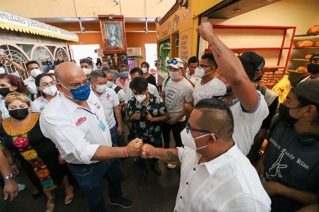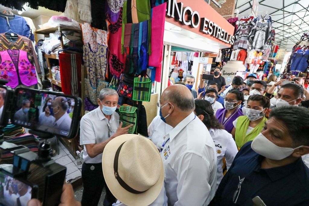Posteriormente, Villacaña Jiménez visitó los diferentes puestos del Mercado Benito Juárez, donde recordó con los mercaderes anécdotas de trabajo y amistad. “Yo soy el único que tiene la experiencia y ha dado resultados aquí, y con su confianza vamos seguir dignificando los mercados para ustedes y las y los visitantes”, afirmó al saludar a los propietarios.