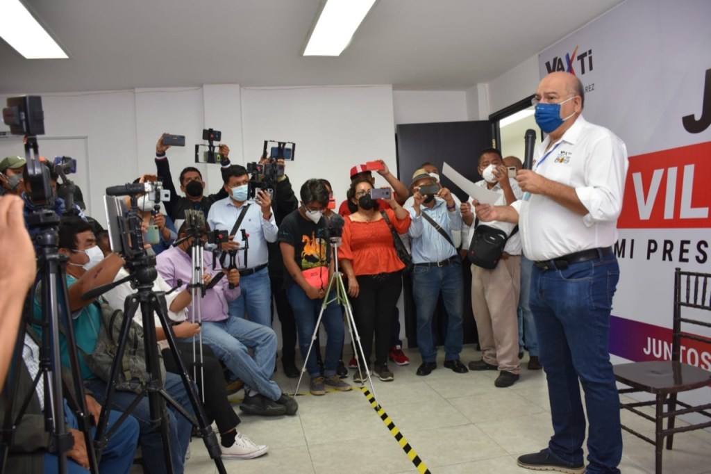 Oaxaca, Oax., 13 de mayo de 2021.- Javier Villacaña Jiménez, candidato común del PRI, PAN y PRD a presidente municipal reiteró que uno de los ejes transversales de su gobierno es garantizar que las obras y recursos otorguen beneficios directos a las familias de la capital.