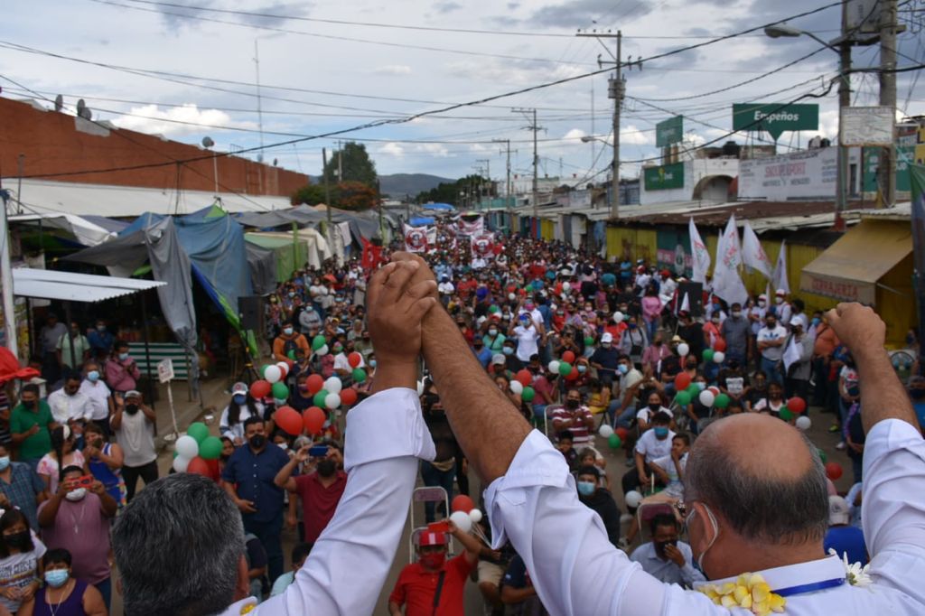 Acompañado de la candidata a diputada local por el distrito electoral XIII, Laura Vignon Carreño e integrantes de la planilla de la alianza “Va por Oaxaca”, Javier Villacaña Jiménez agradeció a la militancia de la UCD y de la Alianza de Organizaciones del Estado de Oaxaca el respaldo y su confianza para encabezar un gobierno plural que responda a las necesidades ciudadanas y los sectores que la conforman.