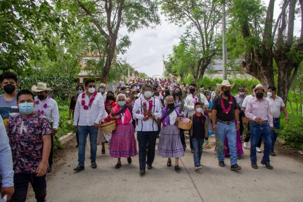 Oaxaca, Oax., Junio 13 de 2021. «Misión cumplida, señor presidente, le dije a Andrés Manuel López Obrador, en su gira por Oaxaca», dijo Francisco Martínez Neri, presidente municipal electo del municipio de Oaxaca de Juárez, frente a cientos de habitantes de su natal San Andrés Zautla y de las agencias de policía de San Isidro y Alemán, este día domingo, en una comida que le ofrecieron por su triunfo en la pasada jornada electoral.