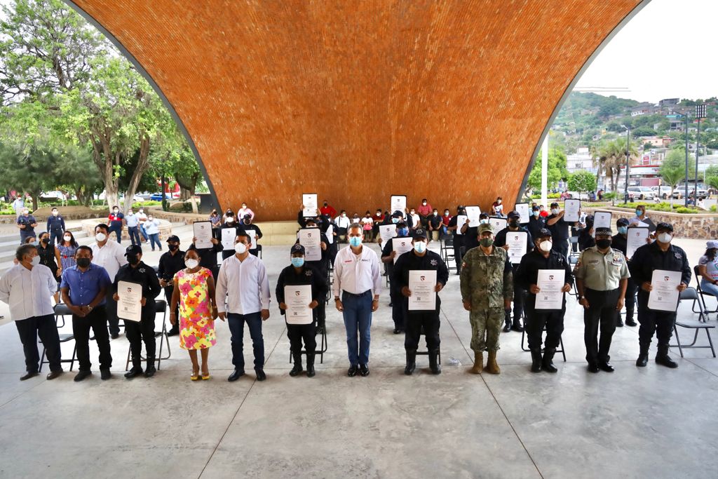 En el mismo escenario, el titular del Secretariado Ejecutivo, Manuel Vera, entregó 31 Certificados Único Policial a las y los elementos de la Policía Municipal, que acreditaron los cuatro componentes de control confianza para obtener este título.