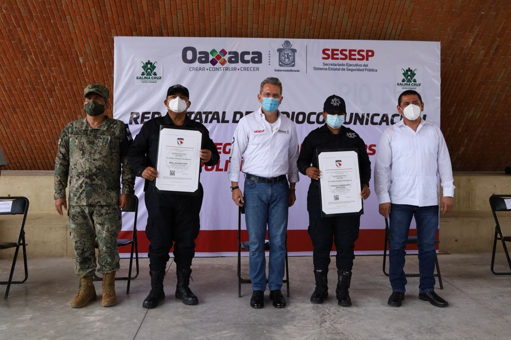 El Gobierno de Oaxaca que encabeza Alejandro Murat Hinojosa, continúa impulsando acciones para la modernización de la Red Estatal de Radiocomunicación, por ello, el secretario ejecutivo del Sistema Estatal de Seguridad Pública (SESESP), José Manuel Vera Salinas, se reunió con el presidente municipal de Salina Cruz, Juan Carlos Atecas Altamirano, a quien entregó, en nombre del ejecutivo estatal, 30 radios con tecnología ASTRO P25 y 2 radios base para patrullas.