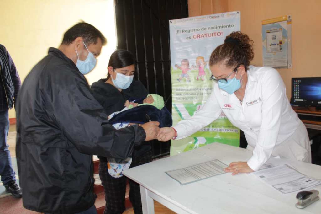 Los oficiales itinerantes del Registro Civil continúan con la campaña de Registros de Nacimientos gratuitos en las regiones del estado, como lo ha instruido el gobernador Alejandro Murat Hinojosa, en coordinación con el Registro Nacional de Población (Renapo), para dar certeza jurídica a niños recién nacidos y hasta los seis años de edad.