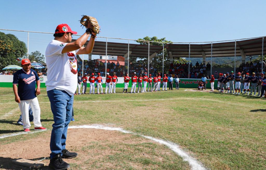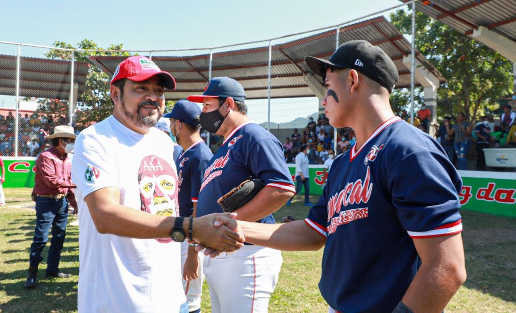 • En Temascal el precandidato a Gobernador de Oaxaca asistió como invitado para lanzar la primera bola en la final de béisbol.