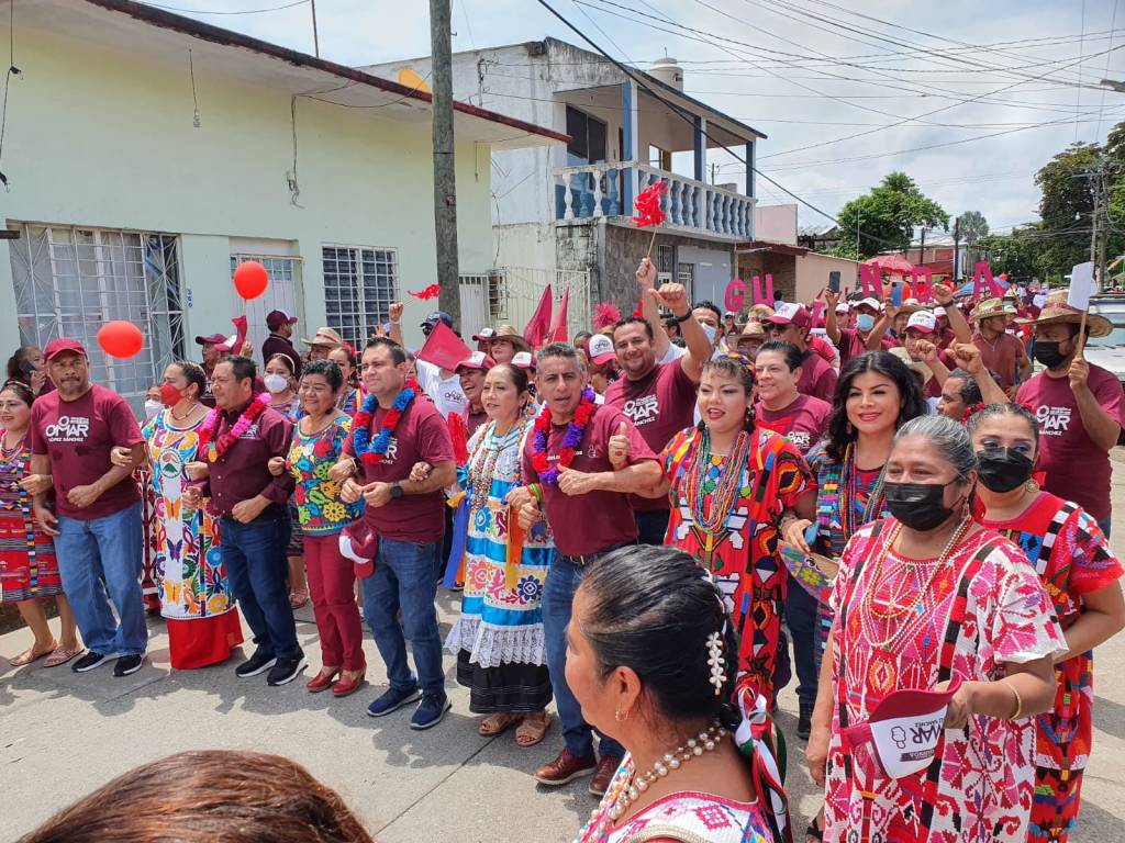 Acompañado por centenas de trabajadores al servicio de los diferentes centros de salud y simpatizantes de la región de Tuxtepec, acompañan en una majestuosa y multicolor comitiva al Candidato Guinda Omar de Jesús López Sánchez.