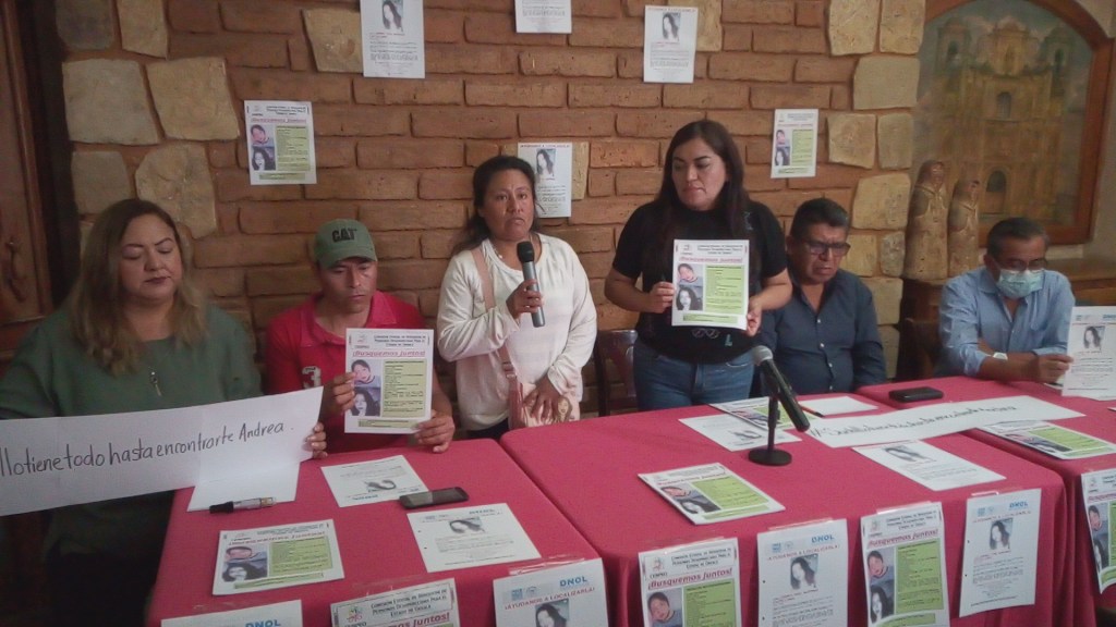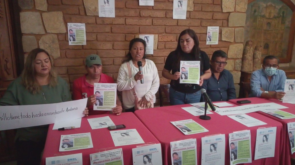 Oaxaca, México; 22 de enero de 2023.- Este domingo se realizó una conferencia de prensa para pedir a las autoridades competentes intensifiquen la búsqueda de Andrea Itzel Martínez Castellanos, desaparecida el pasado martes 17 de enero, la cual fue ofrecida por las autoridades municipales de Santiago Suchilquitongo y familiares de la menor que es originaria de este comunidad del Valle de Etla.