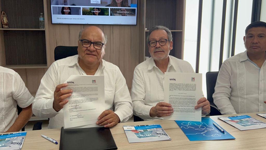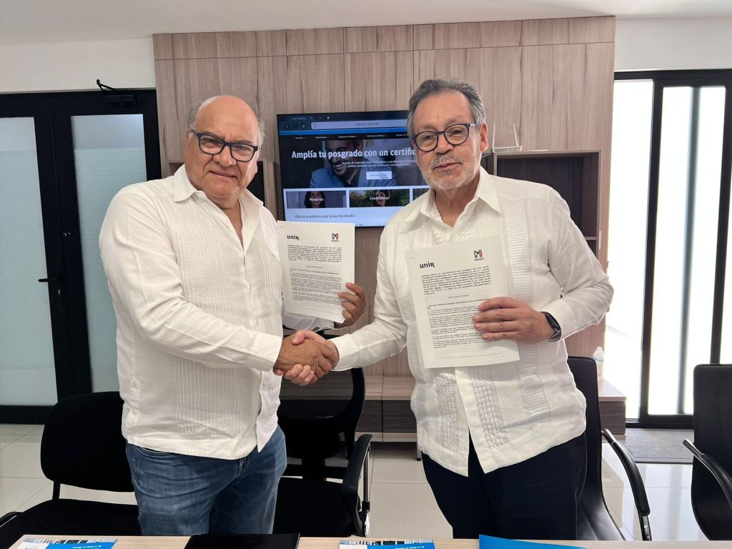 Reunidos en la sede del PRI estatal, Javier Villacaña Jiménez, presidente del CDE y David Mejía Rodríguez, Rector de la UNIR México; signaron el documento que formaliza esta colaboración, que permitirá otorgar becas a militantes, trabajadores y simpatizantes de este instituto político en el pago de sus estudios de educación superior y posgrado.