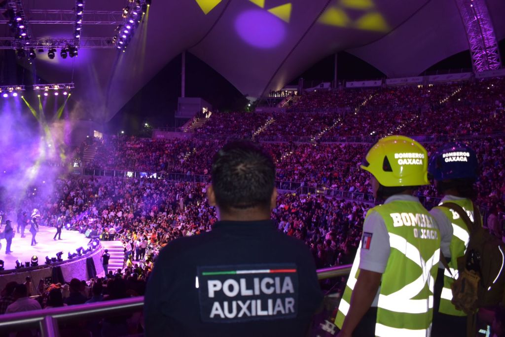 Durante los conciertos musicales que se llevaron a cabo los días 25, 27 y 28 de julio en el Auditorio Guelaguetza, 390 elementos implementaron operativos de seguridad para prevenir cualquier alteración del orden público.