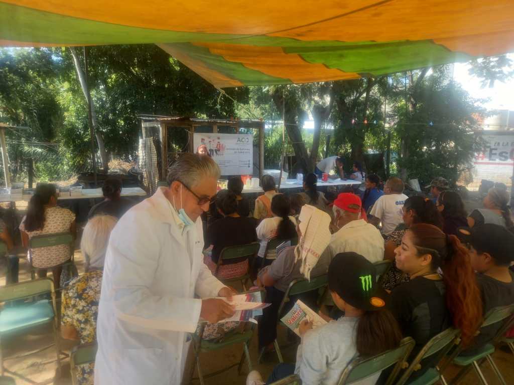 Tras seis horas de trabajo, personal de la brigada de Apoyo Comunitario de Oaxaca (ACO) atendió a 150 personas que requerían del especialista encargado del cuidado primario de la salud visual.