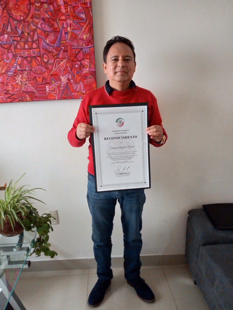 Recibe Reconocimiento por el Senado de la República..Fernando Aguilar Robles Orgullo Oaxaqueño.